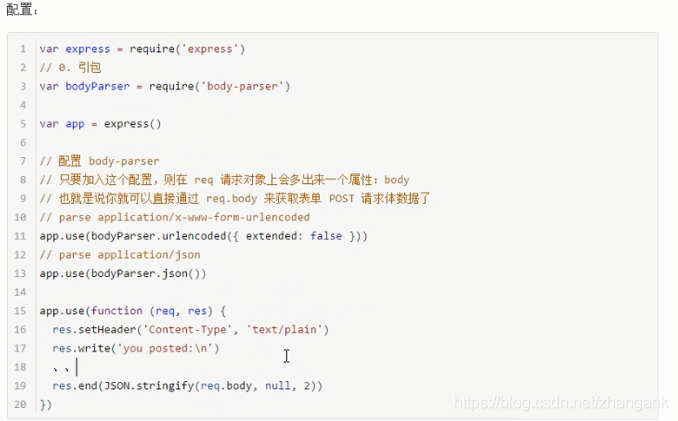 • post 方法:借助第三方模块body-parserres.body也是对象形式;