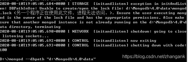 • 修改数据库存储目录:mongod --dbpath=数据库存储目录路径//mongod --dbpath=D:\Mongodb\4.0\data;修改前关闭本地 MongoDB 服务;