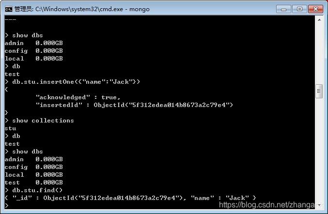 • 创建一条数据:db.stu.insertOne({"name":"Jack"})
